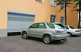 - По сравнению с распашными воротами рольворота, работающие в вертикальной плоскости, идеально подходят для объектов, где подъезд к гаражу занимает небольшую территорию либо въезд происходит с тротуара.